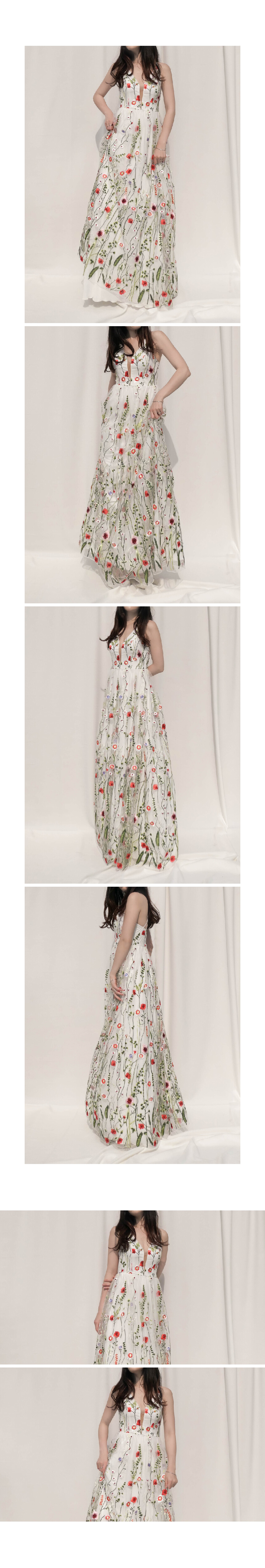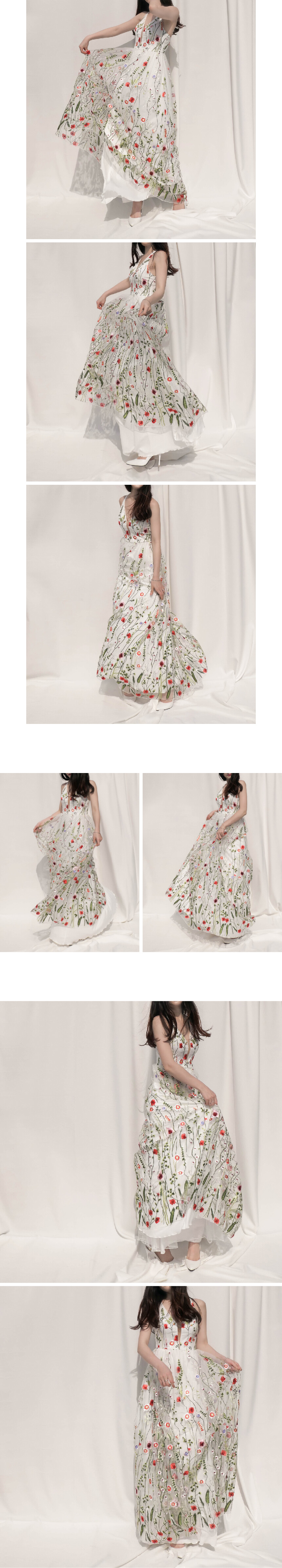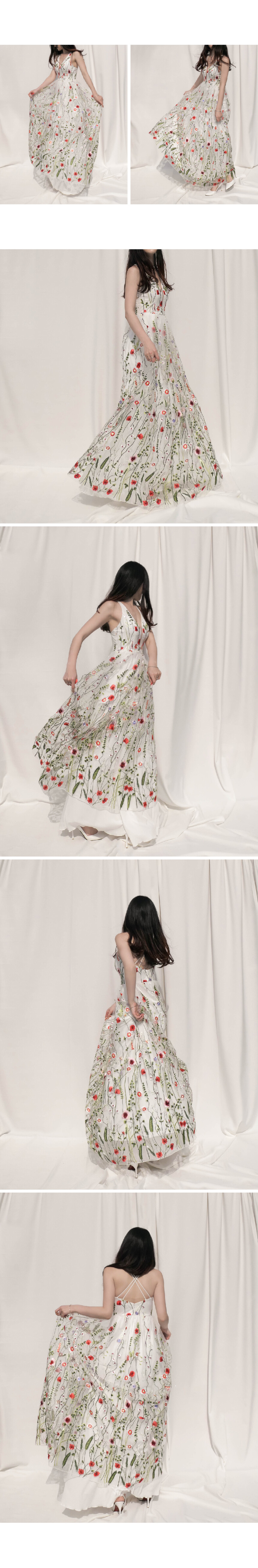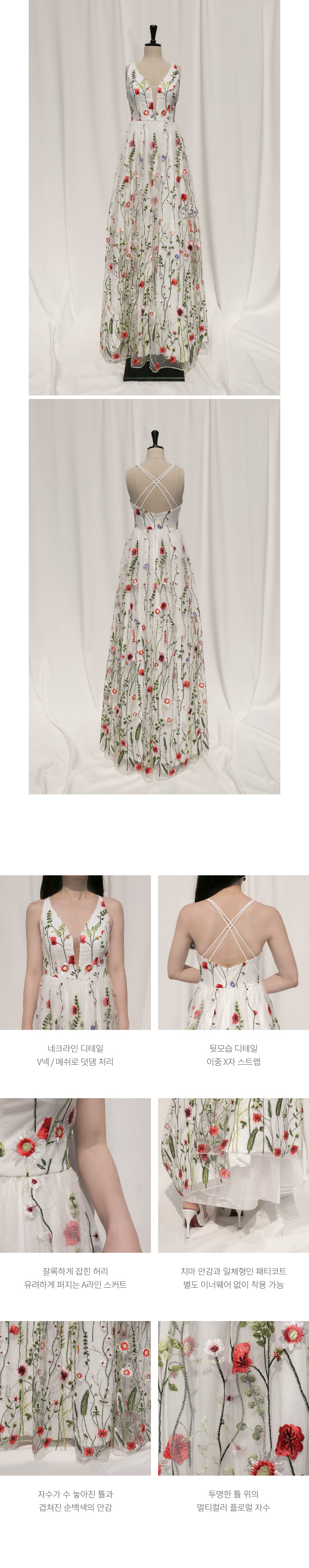 들판에 핀 꽃처럼 투명한 튤 위에 꽃과 나뭇잎, 덩쿨이 화려하게 수놓아져 있는 봄 같은 드레스 by City Studios