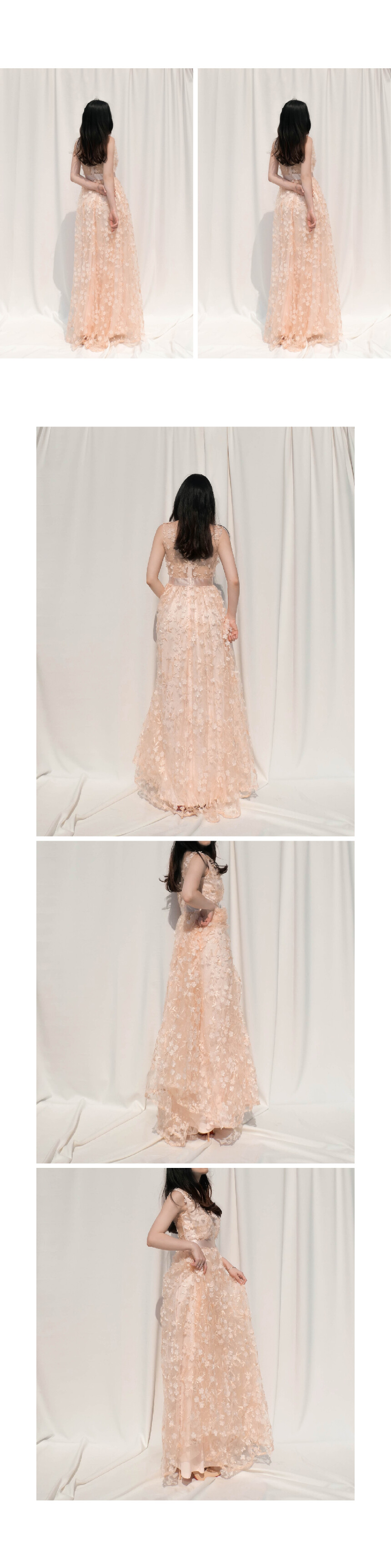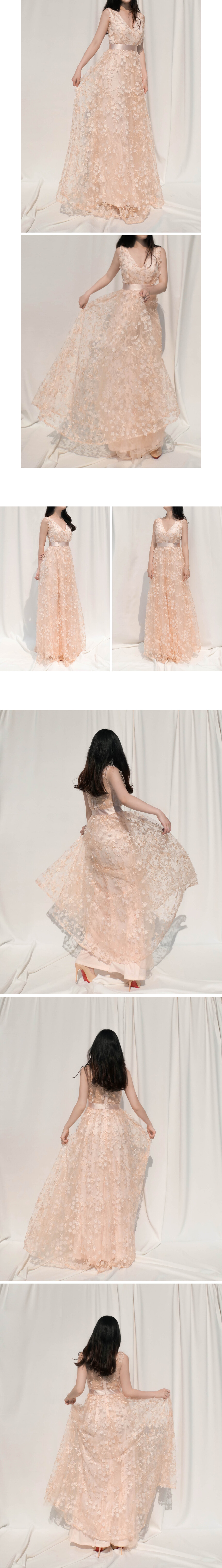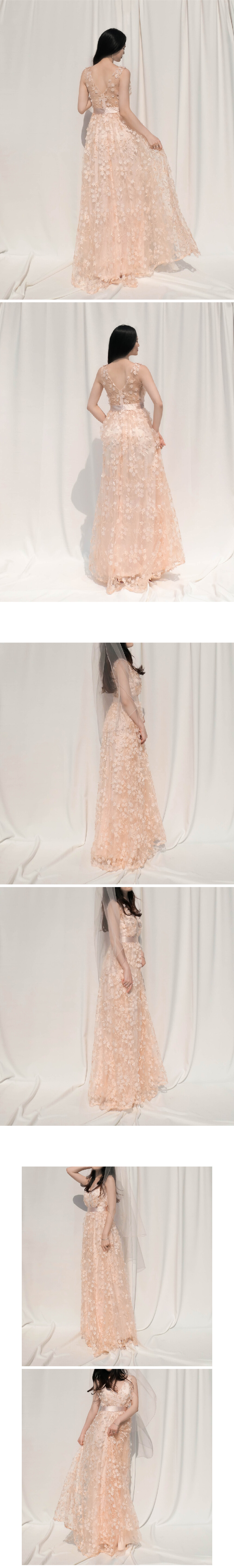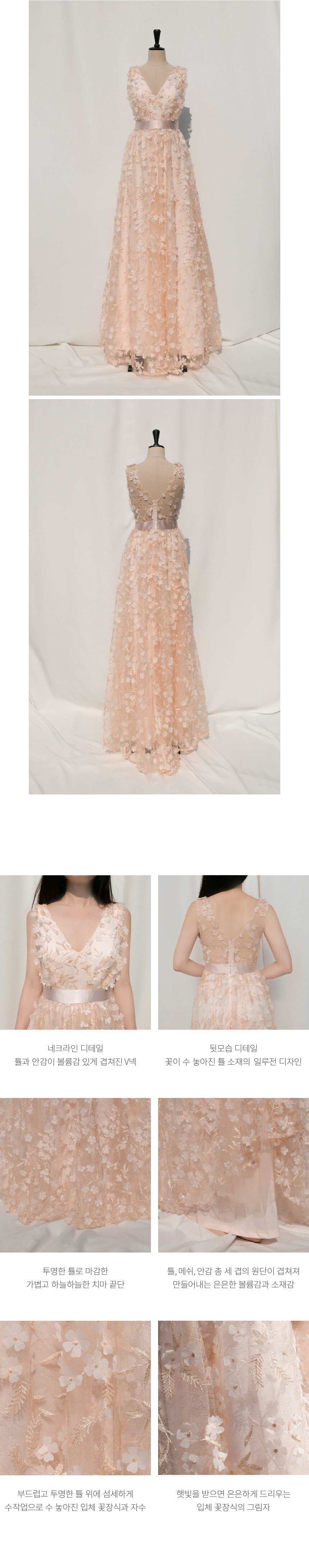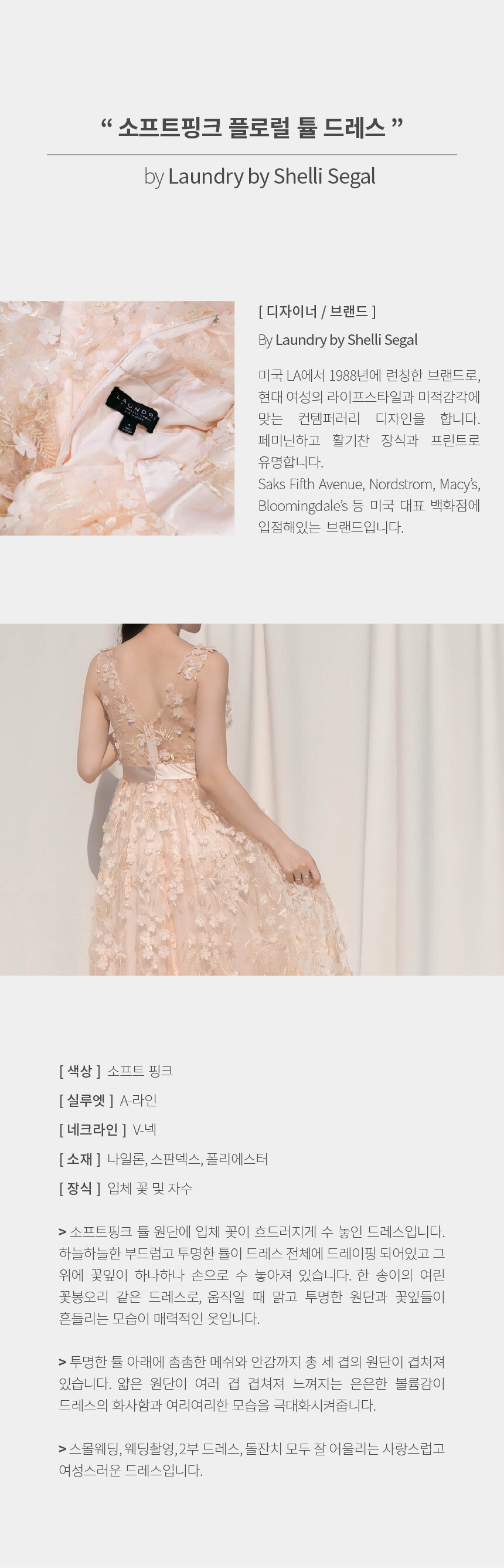 소프트핑크 튤 원단에 입체 꽃이 흐드러지게 수놓아진 한 송이의 꽃봉오리 같은 드레스 by Laundry by Shelli Segal