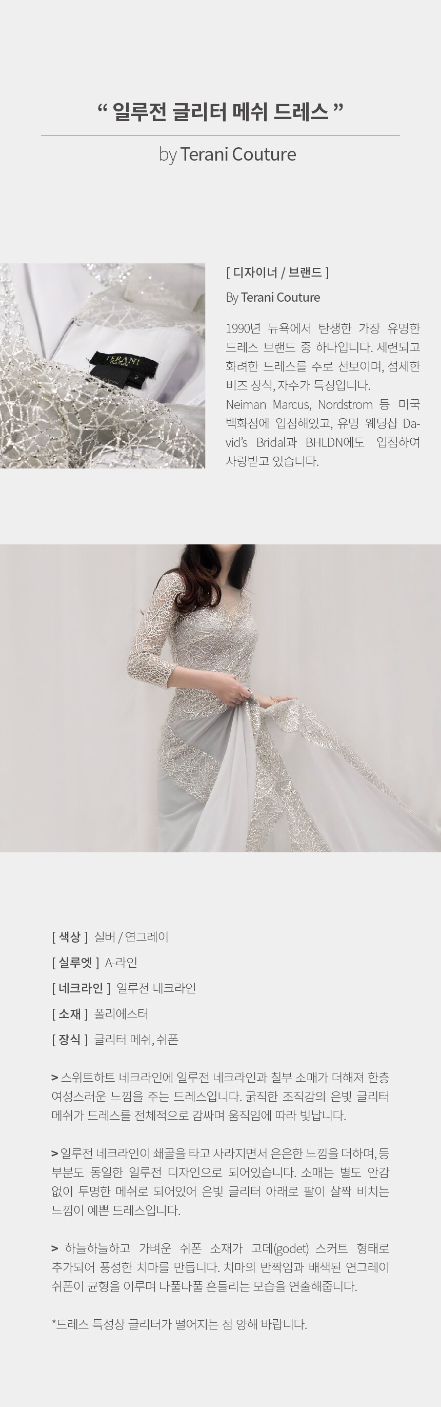 [Terani Couture] 일루전 네크라인 글리터 메쉬 드레스
