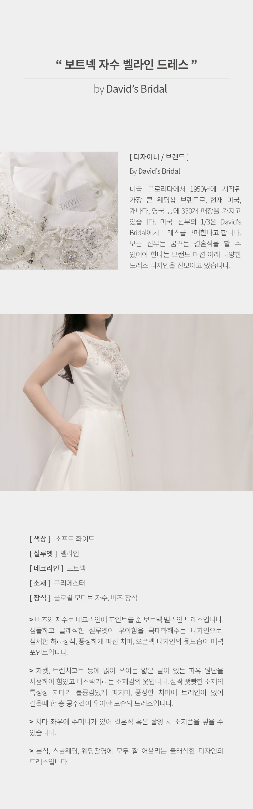 [David's Bridal] 보트넥 자수 벨라인 드레스