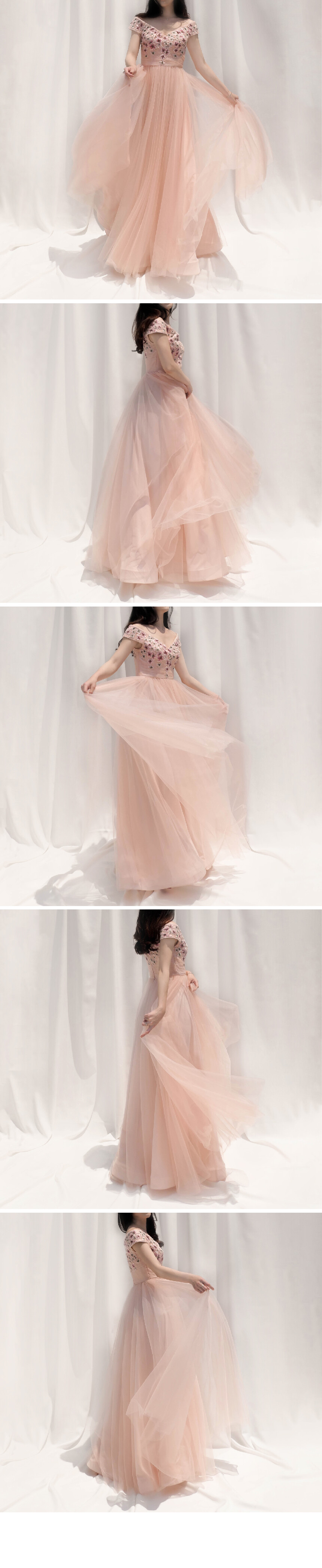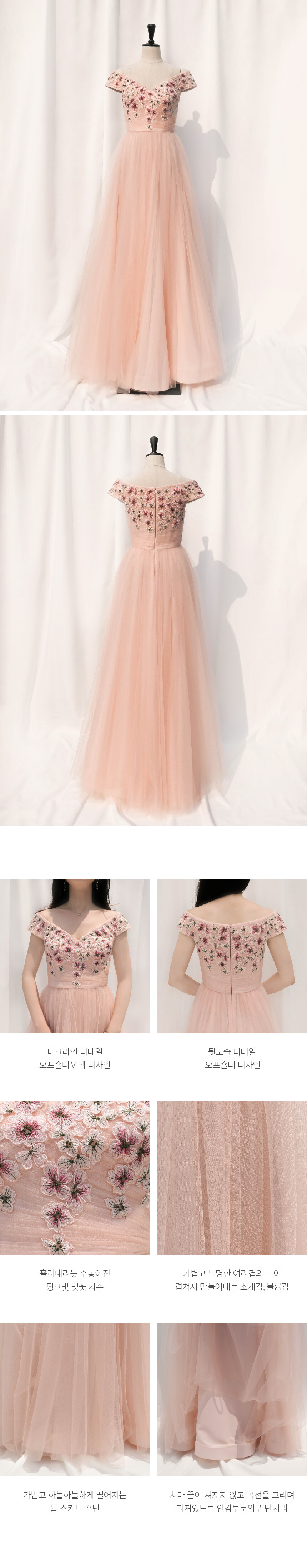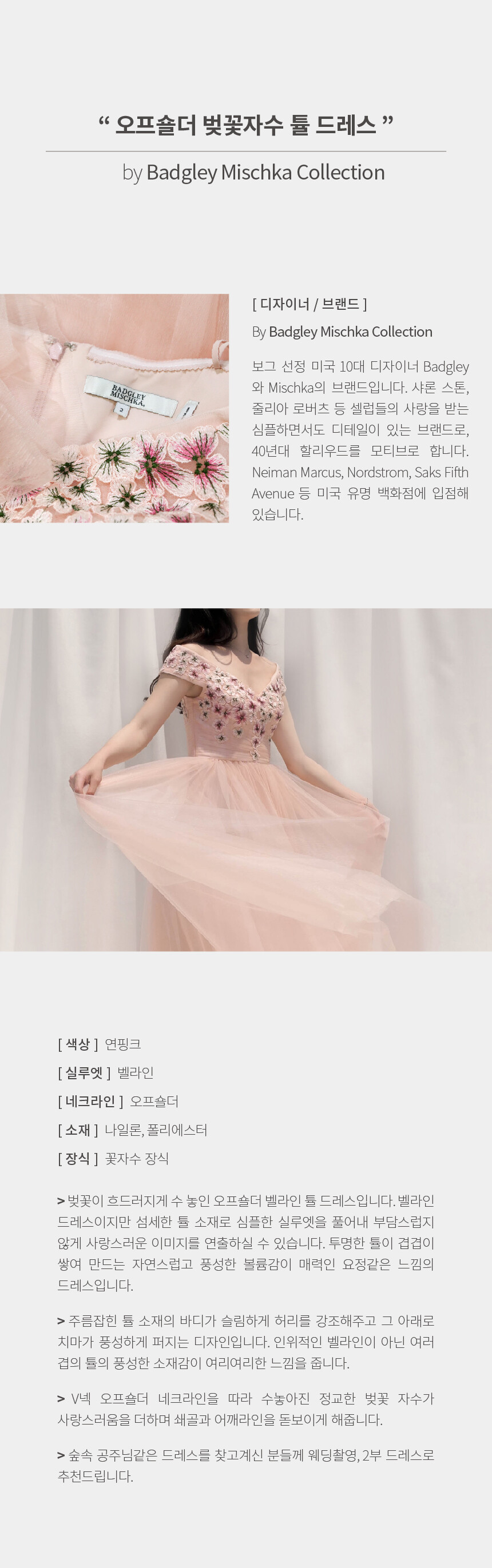 [Badgley Mischka Collection] 오프숄더 벚꽃자수 튤 드레스