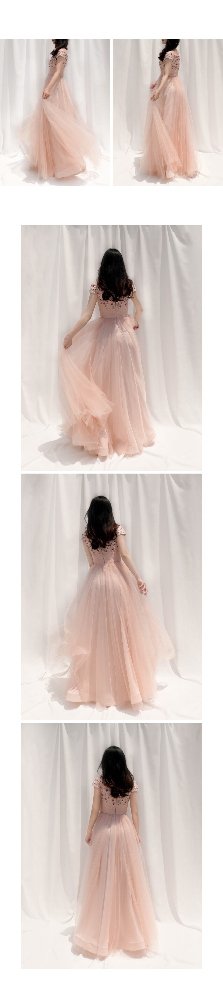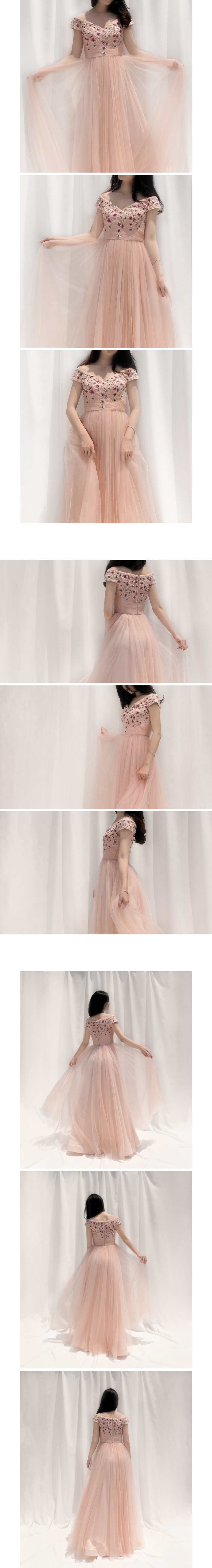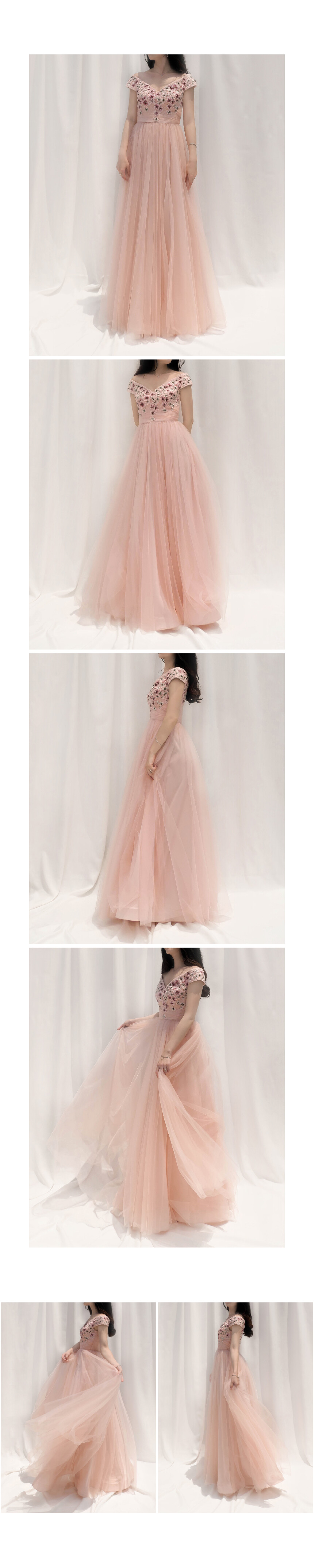 [Badgley Mischka Collection] 오프숄더 벚꽃자수 튤 드레스