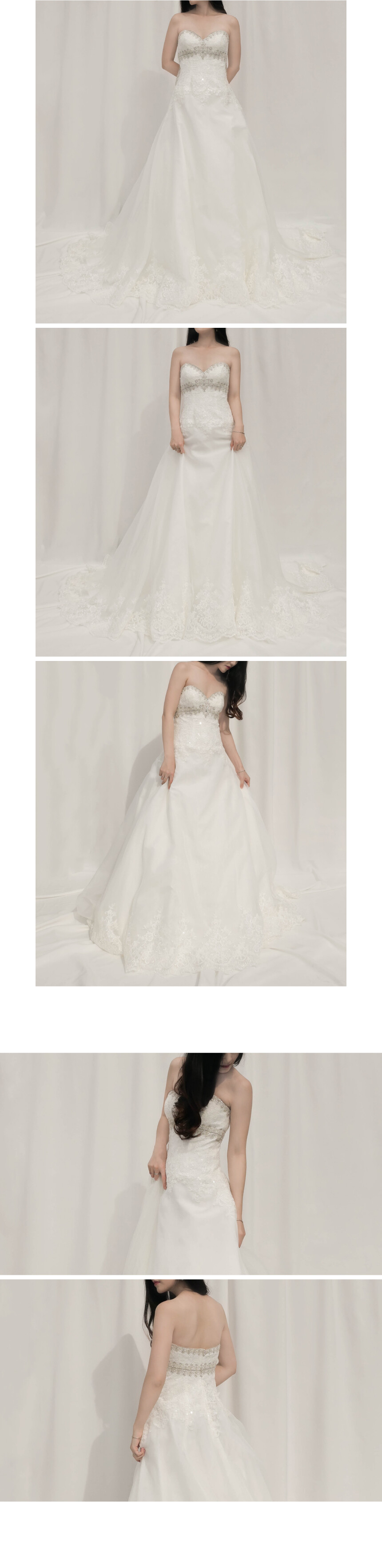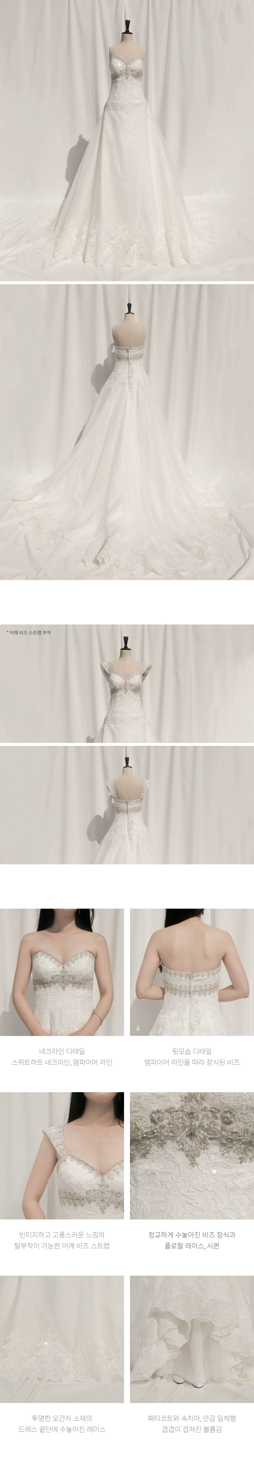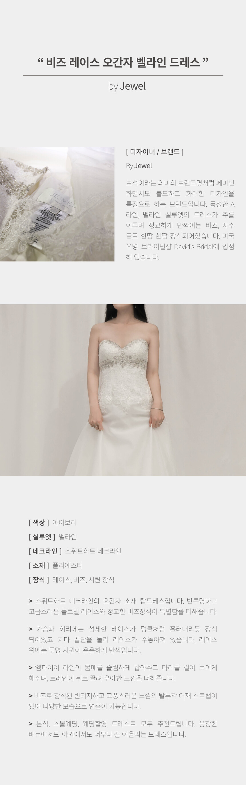 스위트하트 네크라인에 플로럴 레이스와 정교한 비즈가 장식된 오간자 소재 탑드레스 by Jewel