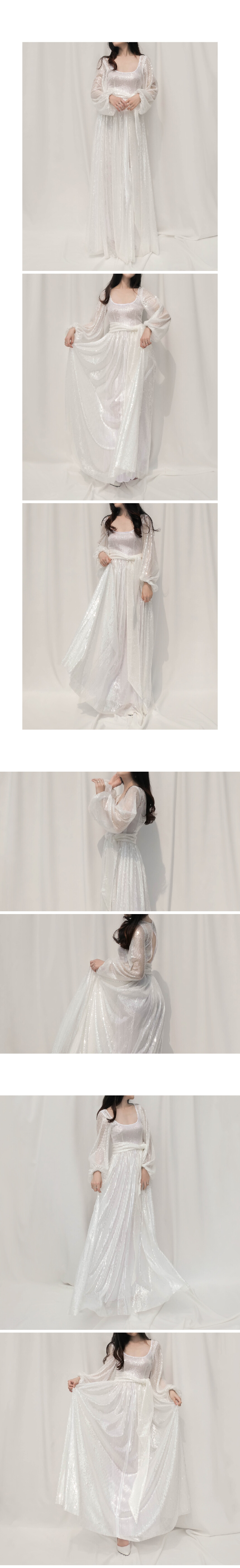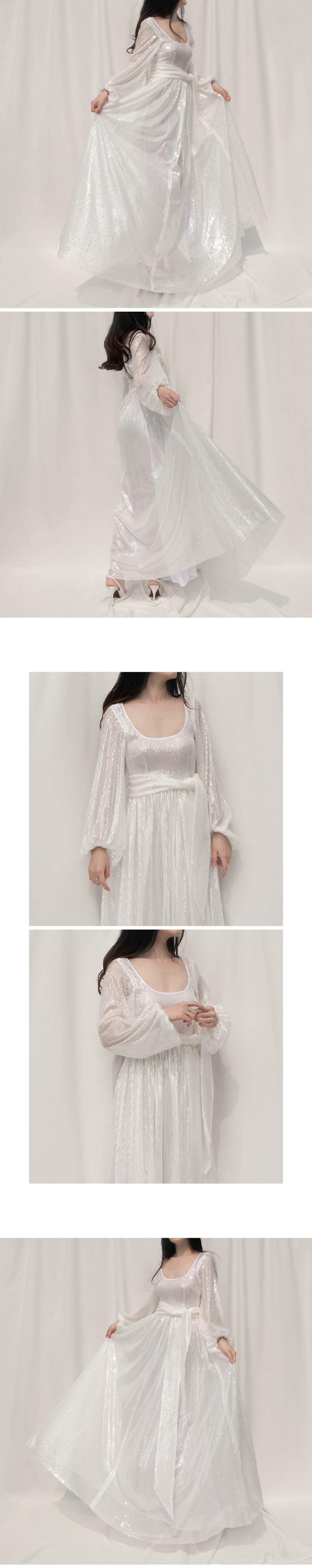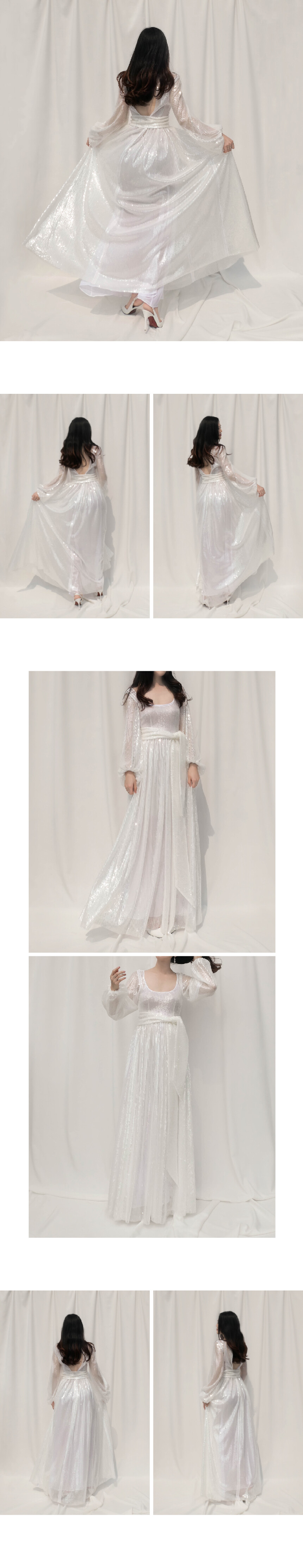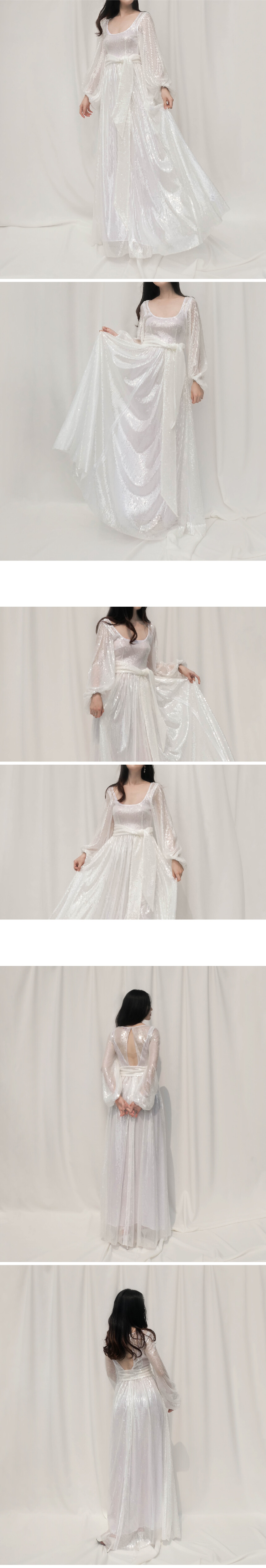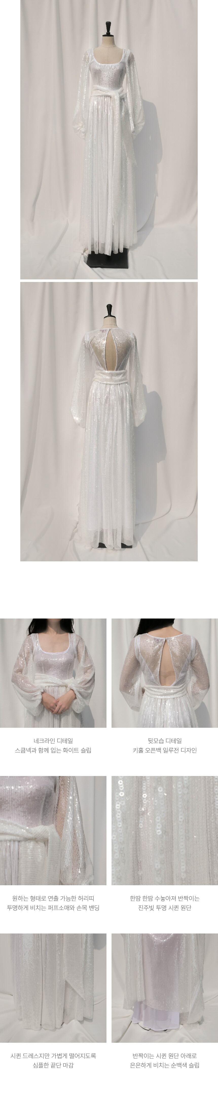 투명하게 반짝이는 진주빛 시퀸이 온 몸을 감싸는 화려한 드레스 by Parker Black