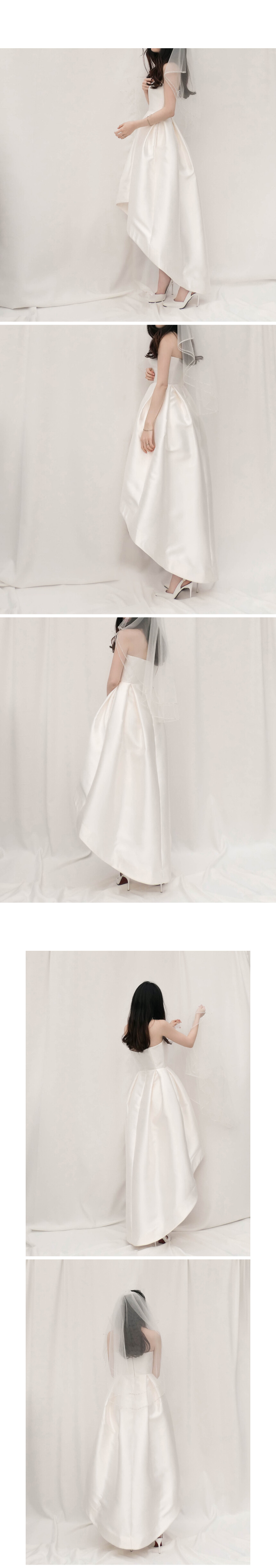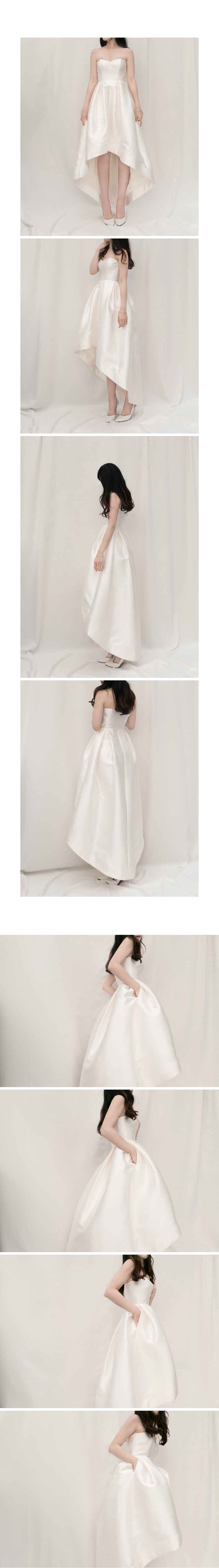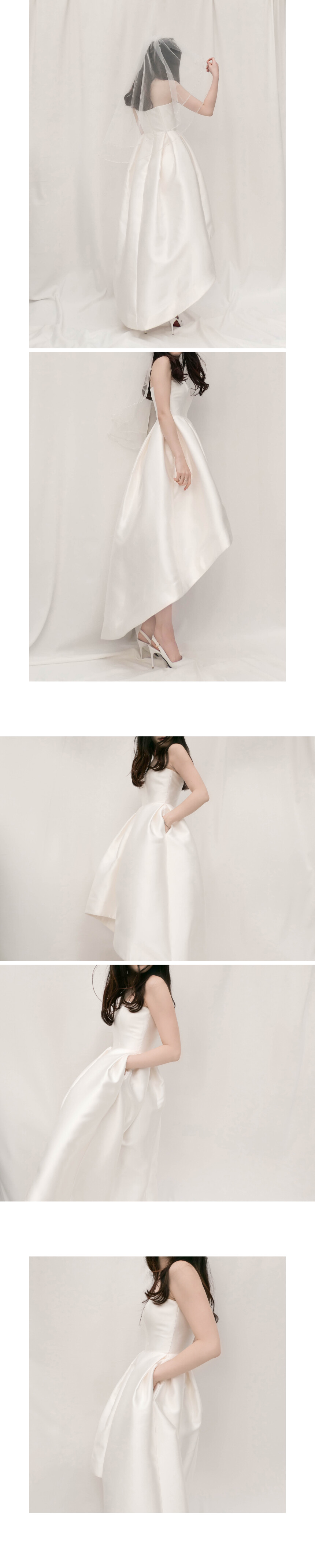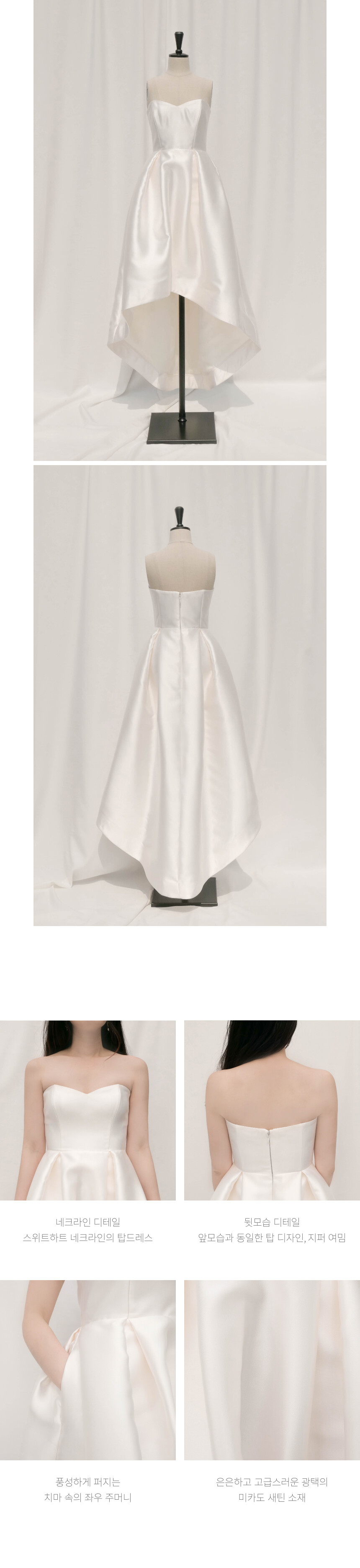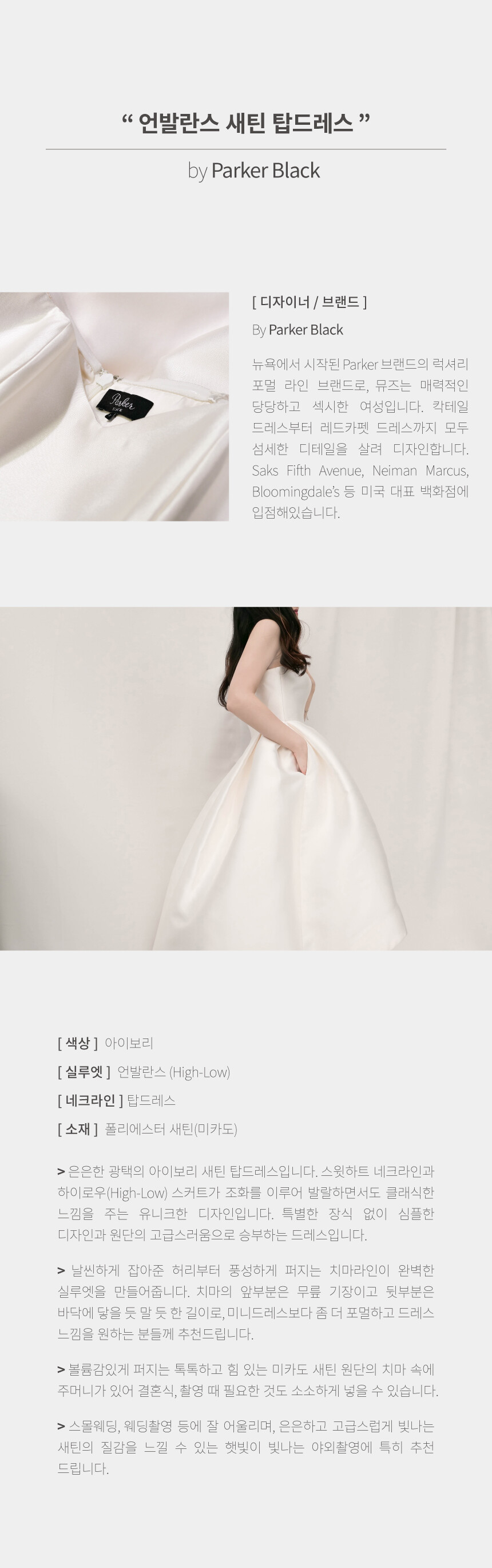 은은하게 빛나는 새틴 질감의 풍성한 언발란스 탑드레스 by Parker Black