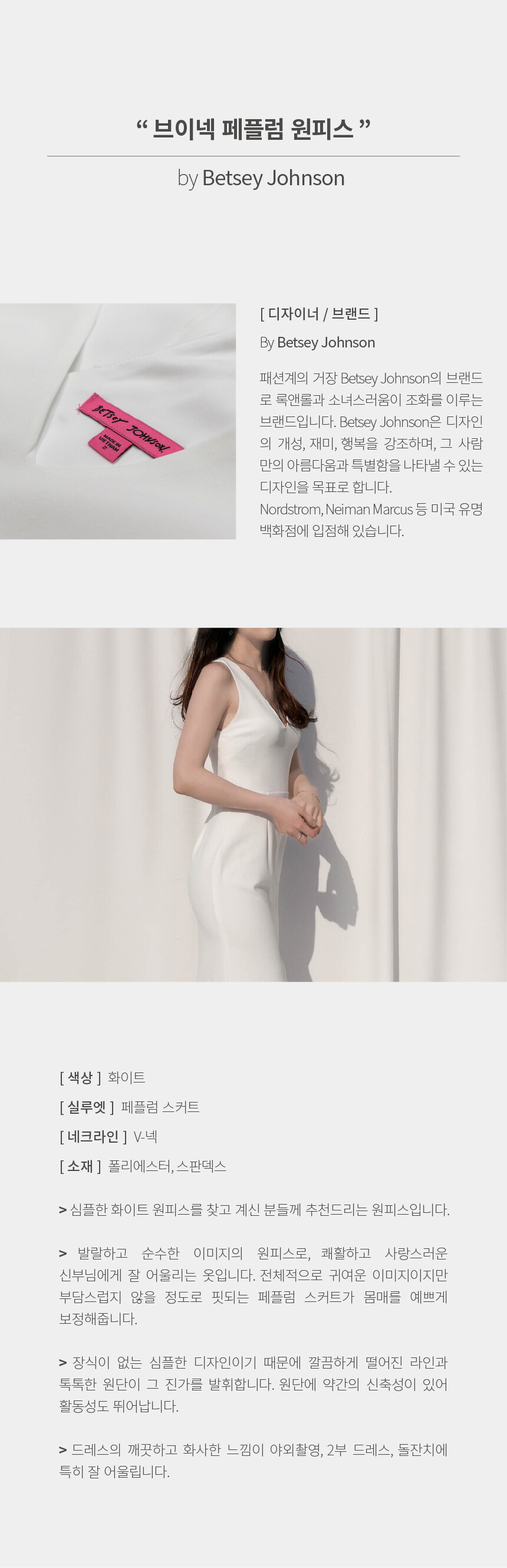 심플한 화이트 페플럼 슬림 원피스 by Betsey Johnson