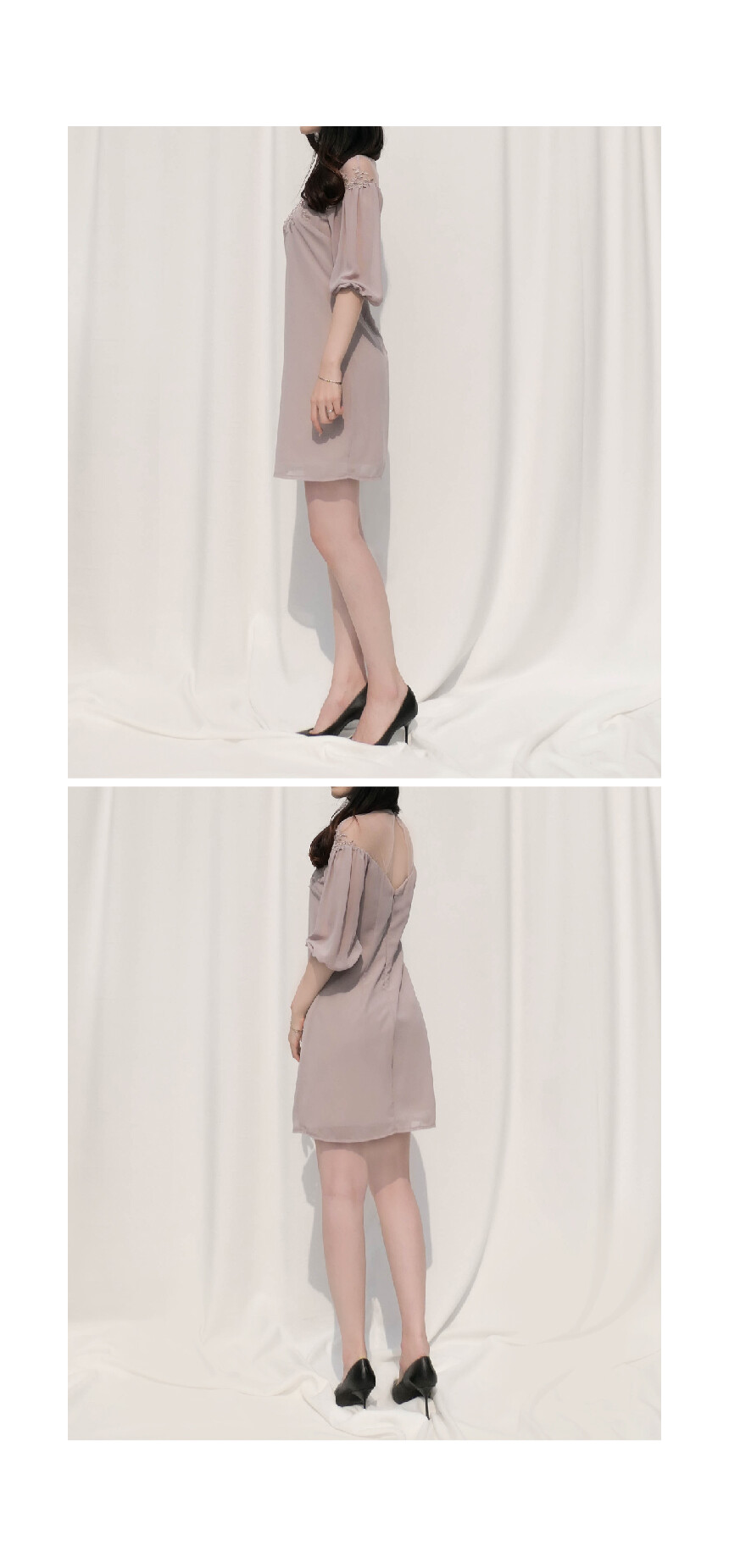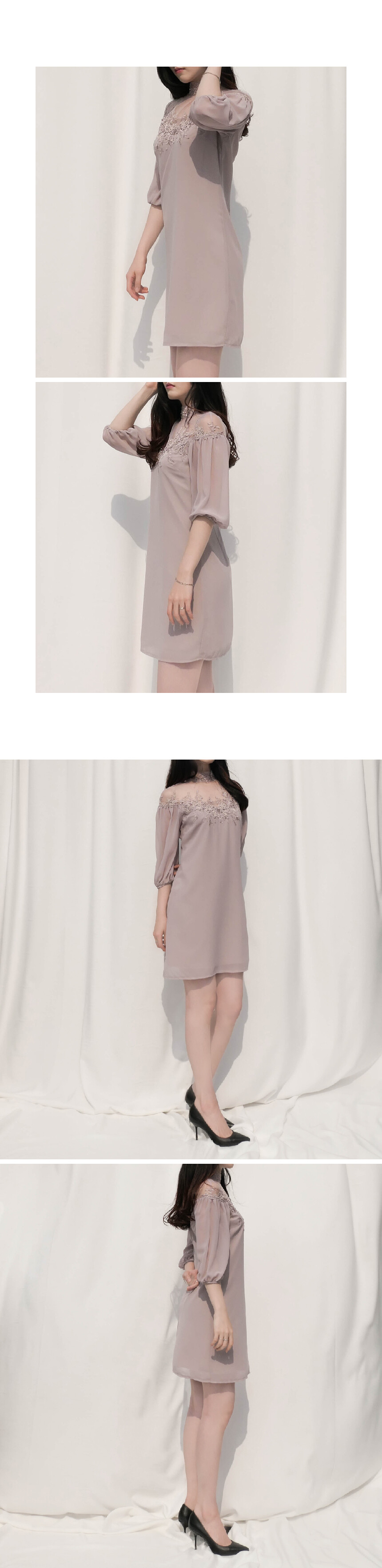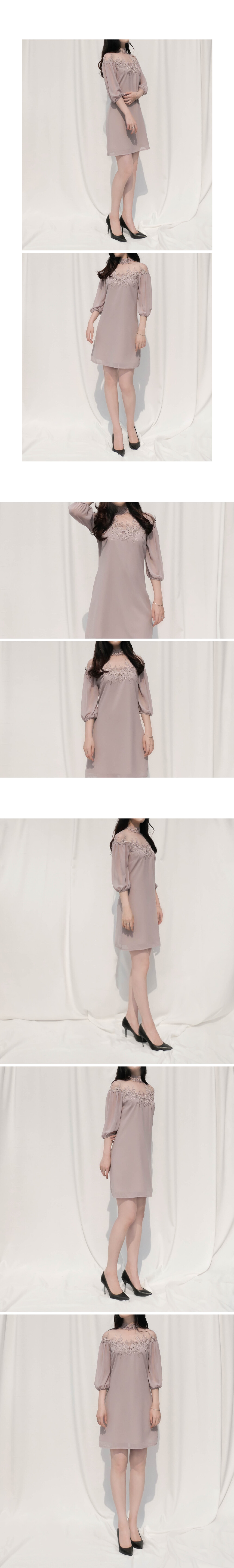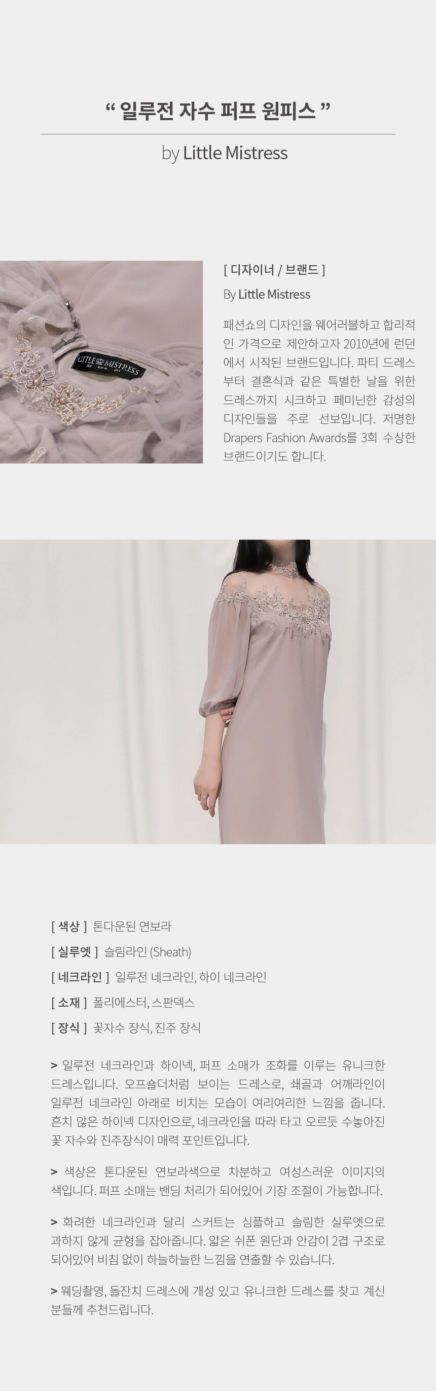 [Little Mistress] 일루전 자수 퍼프 원피스
